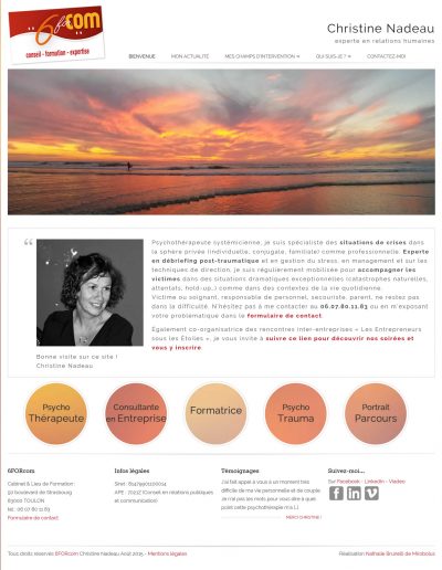 Christine NADEAU, responsable de 6FORcom, psychothérapeute, a confié la réalisation de son site internet à Mirobolus.