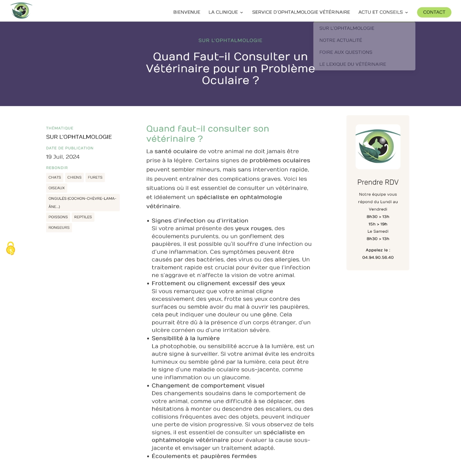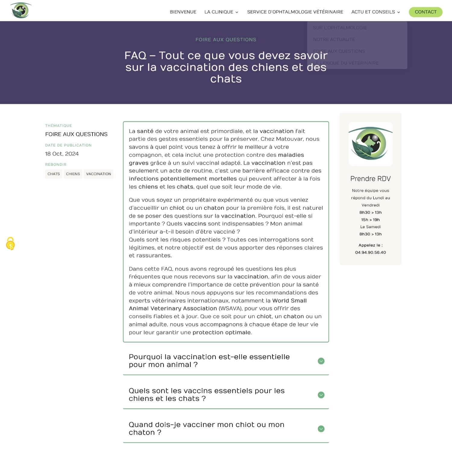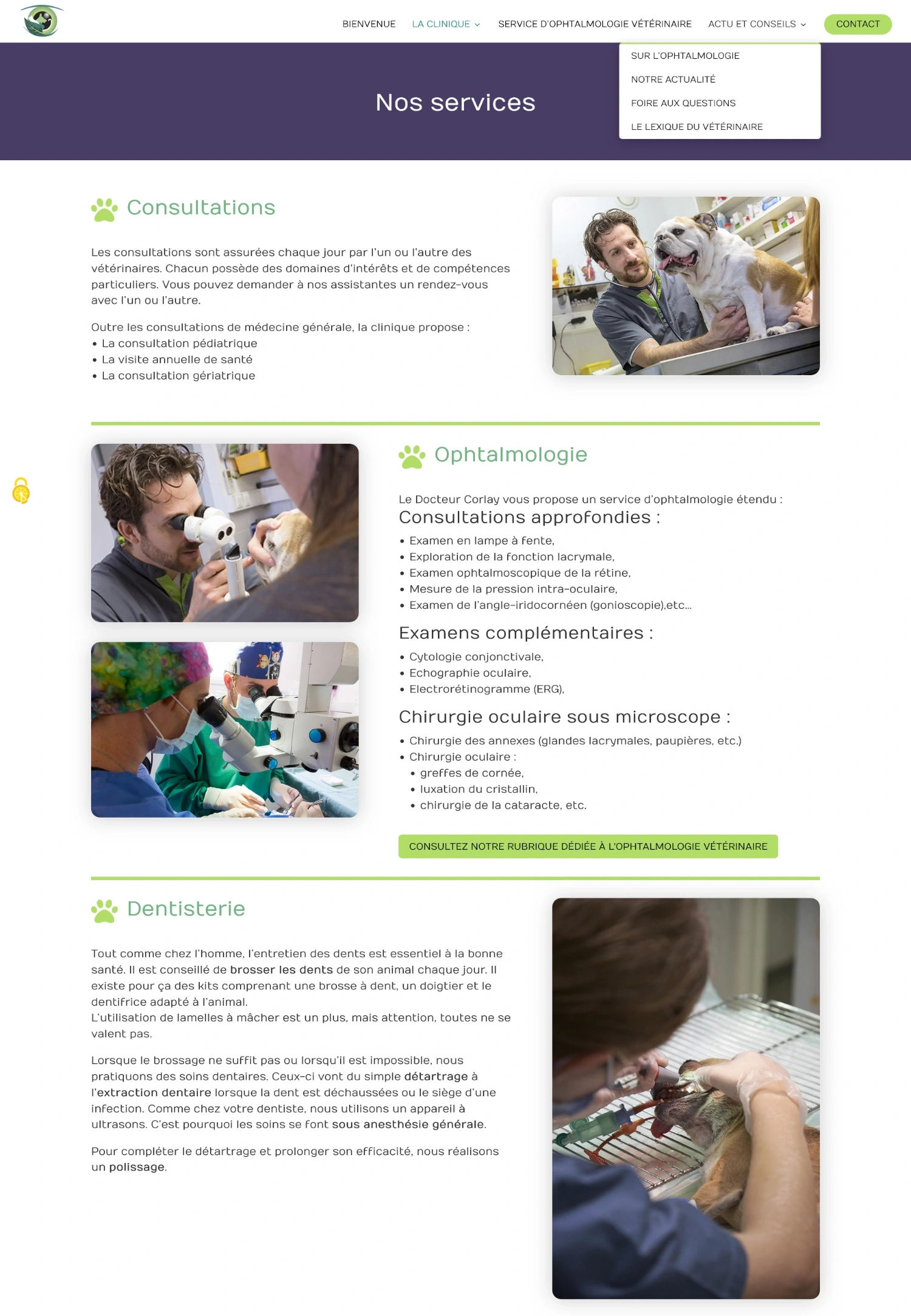 Quand le Docteur Corlay m’a confié la mission de sauver les contenus du site internet de sa clinique avant sa suppression, j’ai trouvé que mon métier était décidément passionnant ! Nous avons pu préserver le référencement d’une centaine d’articles et créer un site internet qui s’enrichira progressivement des publications de Cédric Corlay, notamment sur sa spécialité : l’ophtalmologie animale.