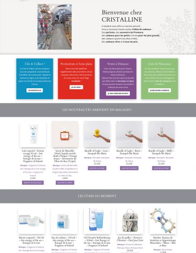 Au printemps 2016 est né un nouveau bébé Mirobolus : le magasin Cristalline, au Beausset, se lance dans le Click-and-Collect et propose à ses clients de faire leur shopping sur son site internet, où la majorité des articles du magasin sont disponibles, de remplir leur panier et de venir retirer leurs trésors dans les 3 jours au magasin.
