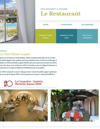 Mirobolus a le plaisir d’accompagner le couple Lozach depuis l’installation de son établissement en 2014 au Beausset. En 2021, le site internet de l’hôtel restaurant La Cauquière s’est refait un nouveau look, et propose désormais la réservation en ligne.