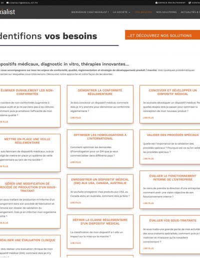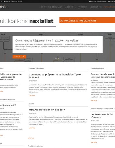 L’aventure de la société nexialist a commencé en 2006 et c’est en 2012 que Mirobolus avait été chargée de créer son site internet. Aujourd’hui, l’entreprise compte une trentaine de collaborateurs et c’est avec un grand plaisir que j’ai été appelée à retravailler le site internet de l’entreprise. Ou plus exactement les sites, puisque la communication se déploie autour de nexialist.fr, nexinform.fr, en versions française et anglaise. Après avoir reconstruit les sites sous WordPress, le site nexialist.fr s’est doté d’un Espace Formation avec réservations et paiements en ligne grâce aux Modules WooCommerce et à The Modern Events Calendar.