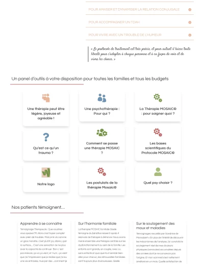 Site internet dédié à la thérapie MOSAIC par Sandrine de Monsabert, Thérapeute à Ollioules (Var) et propriétaire du site artfamilial.com.