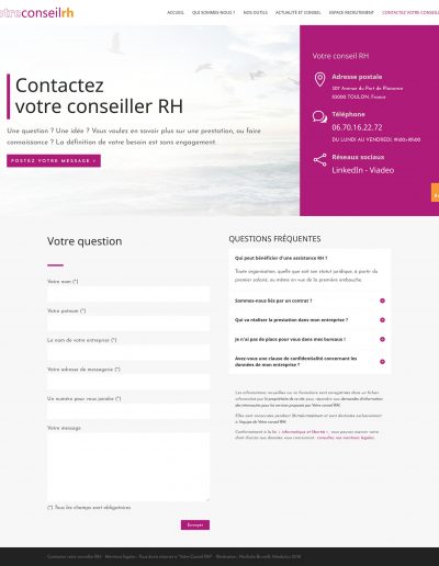 Votre conseil RH est une société de services aux entreprises désireuses d’externaliser la gestion de leurs ressources humaines, mais pas que : véritable couteau suisse du manager, Votre conseil RH propose entre autres des outils de diagnostic, des conseils sur le droit du travail et le management, la diffusion d’informations du secteur, et permet au manager de prendre les bonnes décisions dans l’évolution de son entreprise.