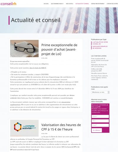 - Zone de publication d’articles d’actualité et conseils, offres de recrutement/candidature spontanée