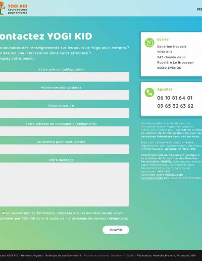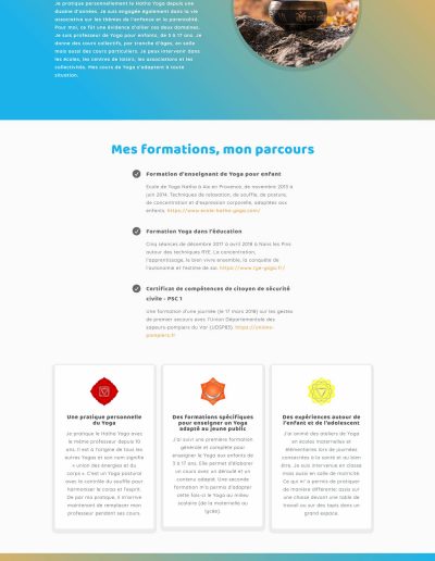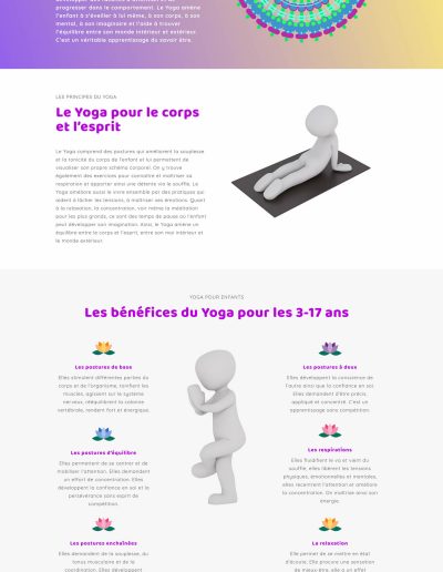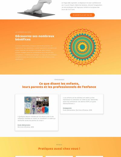 Sandrine Novasik, qui pratique le yoga depuis de nombreuses années, a lancé son activité de Cours de Yoga pour les enfants et adolescents. Elle m’a confié la réalisation de son site internet qu’elle souhaitait solaire, chaleureux et évolutif pour lui permettre de diffuser ses conseils et les informations liées à son activité.