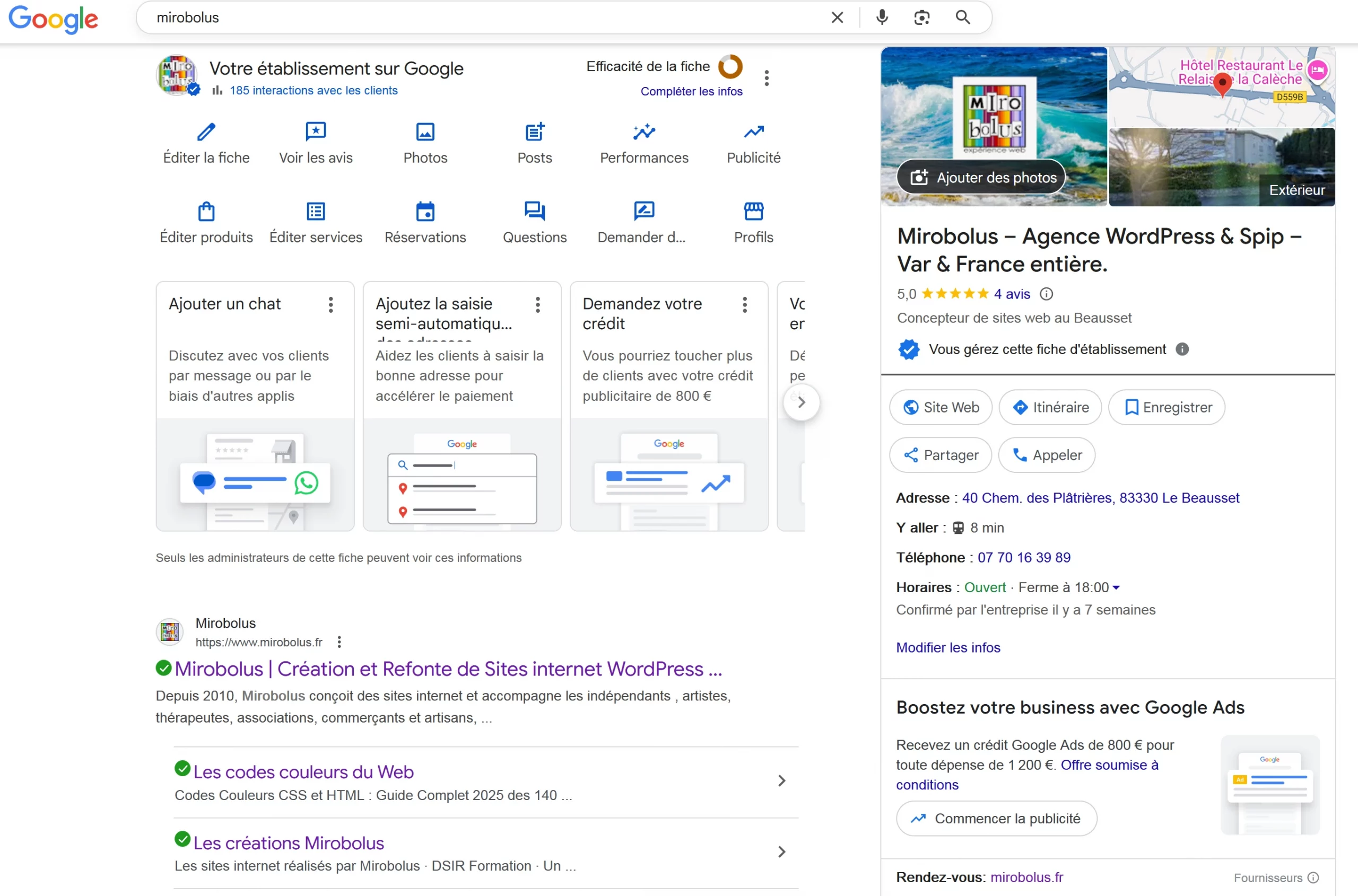 Vous n’avez pas la maîtrise de ce que Google montre à vos potentiels clients, que ce soit sur votre image, vos photos, votre identité graphique, ou sur la liste des produits et services que vous proposez. Ne laissez pas Google parler à votre place !